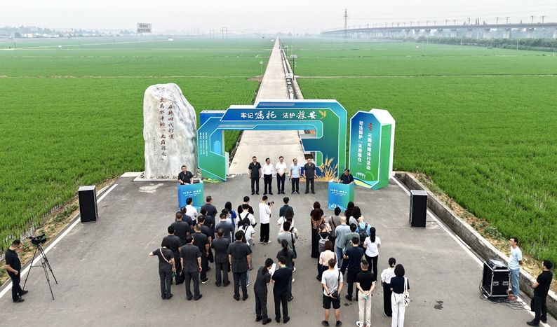 “永豐村建有高標(biāo)準(zhǔn)農(nóng)田4400畝,其中連片規(guī)模種植3400畝,是全省標(biāo)準(zhǔn)化程度最高的高標(biāo)準(zhǔn)農(nóng)田示范樣板之一,承載著保障國家糧食安全的重任?!弊咴谔锍煞健⒙废嗤?、渠相連的高標(biāo)準(zhǔn)農(nóng)田間,全國人大代表、永豐村黨委書記李雪平告訴記者,這片農(nóng)田里不僅孕育出金黃的稻谷,更是巡回法庭審理涉農(nóng)案件、普及耕地保護(hù)法律知識的“試驗(yàn)田”,彰顯了當(dāng)?shù)厝嗣穹ㄔ悍ㄖ巫o(hù)航鄉(xiāng)村振興的堅(jiān)強(qiáng)決心和扎實(shí)舉措。
