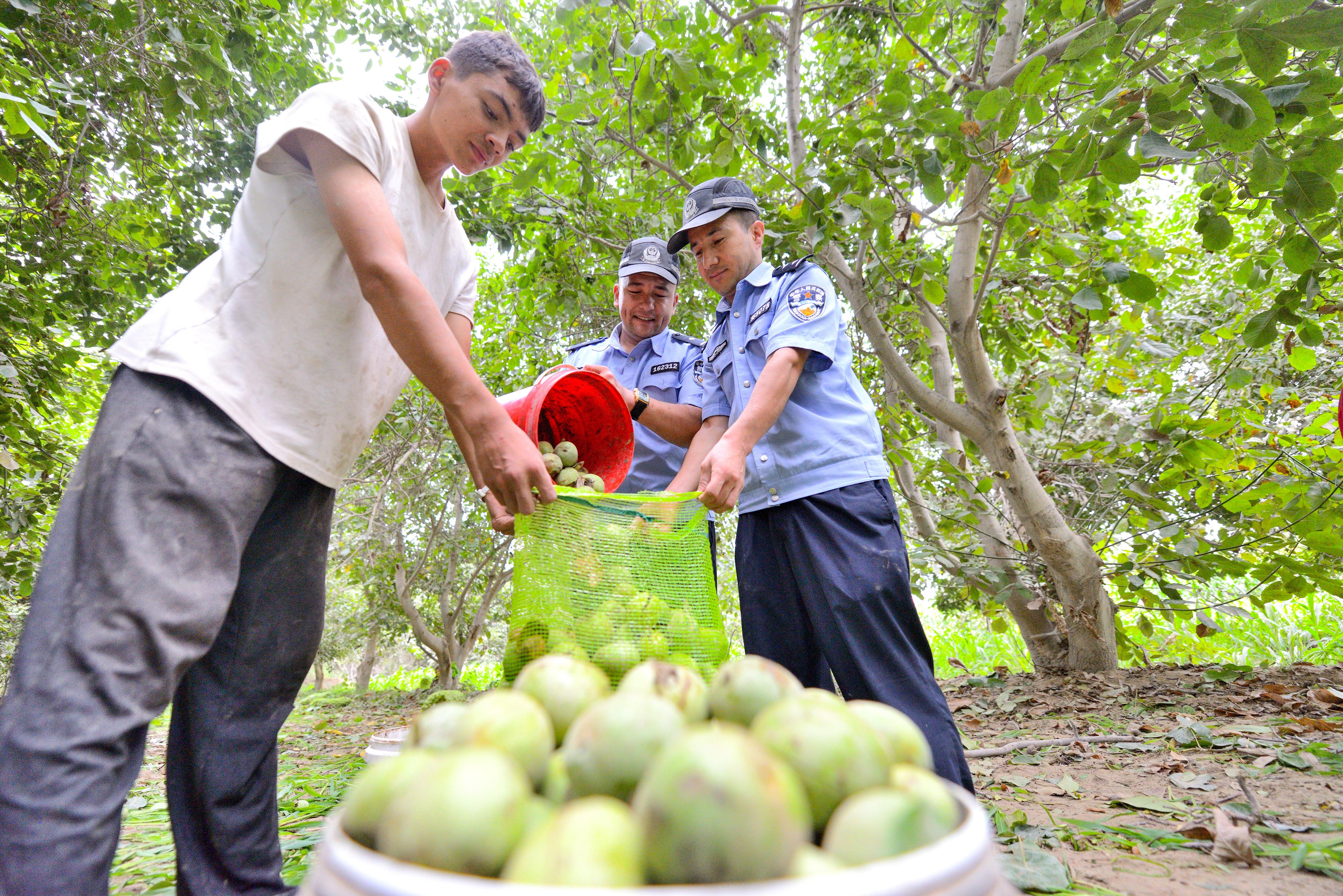 8月18日,在新疆葉城縣依力克其鄉(xiāng)的核桃園里,陣陣爽朗的招呼聲打破了田間的寧靜。葉城縣公安局依力克其鄉(xiāng)派出所組建的助農(nóng)小分隊(duì)深入轄區(qū)核桃園,一邊幫群眾采收核桃,一邊開展普法宣傳活動(dòng),用貼心服務(wù)獲得群眾的紛紛點(diǎn)贊,成為秋日里一道溫暖的風(fēng)景線。