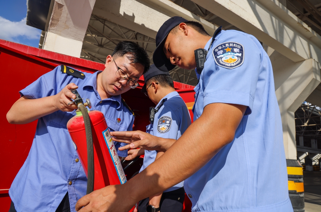 為確保轄區(qū)鐵路治安持續(xù)平穩(wěn),烏魯木齊鐵路公安局哈密公安處集中組織警力對轄區(qū)鐵路廠房、貨場、倉庫等重點場所、部位進行摸排走訪,全面查隱患、補漏洞、保安全;對物流中心內(nèi)重點物資進行檢查登記,及時發(fā)現(xiàn)和消除安全隱患,以實際行動切實守護轄區(qū)鐵路運輸安全暢通。