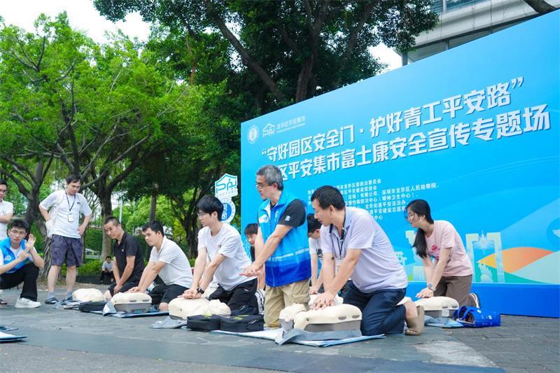活動現(xiàn)場,四大特色互動環(huán)節(jié)快速點(diǎn)燃現(xiàn)場氛圍。龍華區(qū)檢察院工作人員以趣味問答形式帶領(lǐng)青工深入探索法律知識;油松派出所民警結(jié)合真實(shí)案例,細(xì)致拆解電信詐騙的慣用手段與防范技巧;“心理減壓踩氣球”環(huán)節(jié)中,青工們在歡聲笑語里釋放工作壓力;深圳市小黃人應(yīng)急救護(hù)發(fā)展中心的專業(yè)講師則通過實(shí)操演示,手把手教學(xué)心肺復(fù)蘇、AED使用等急救技能,讓應(yīng)急處置知識變得通俗易懂、易學(xué)易用。
