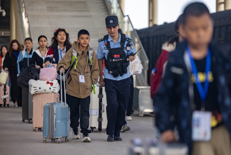 秋風(fēng)送爽,全國各地中小學(xué)陸續(xù)開學(xué),各地火車站迎來客流高峰,為保障旅客乘車安全,連日來,烏魯木齊鐵路公安局喀什公安處堅(jiān)持“囤警于面、顯性用警”,嚴(yán)格落實(shí)治安管理責(zé)任,多措并舉加強(qiáng)服務(wù)保障,相繼增設(shè)“引導(dǎo)崗”“維序崗”“先鋒崗”,全面強(qiáng)化治安防控、隱患排查,以“全天候”守護(hù)、“暖心式”服務(wù)、“零距離”普法等形式,護(hù)航入學(xué)返校師生平安出行。