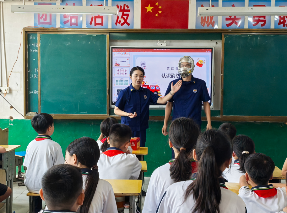 圖為9月4日,消防人員為蓮花縣城北小學(xué)學(xué)生講解消防安全知識(shí)。