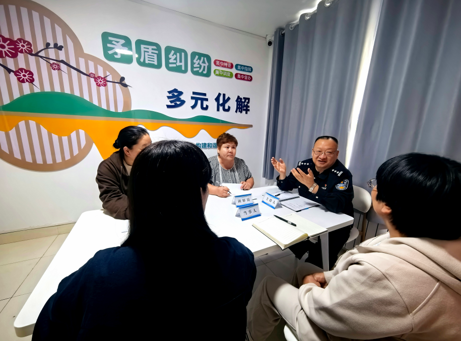 圖為9月8日,在塔城市綜治中心矛盾糾紛調(diào)解室里,工作人員正在化解一起矛盾糾紛并同步開展以案釋法普法宣傳。