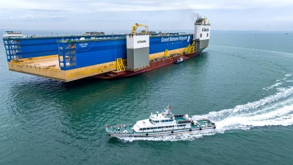 9月22日,由我國自主建造的智能化大型浮船塢搭乘庫拉索島籍半潛船“先鋒輪”從山東青島西海岸新區(qū)起運(yùn)出境,前往北美洲。山東出入境邊防檢查總站黃島邊檢站主動靠前服務(wù),為載運(yùn)船舶提供“一船一策”通關(guān)便利措施,節(jié)約船舶出入境手續(xù)辦理時間,助力“中國制造”順利起運(yùn)出境。