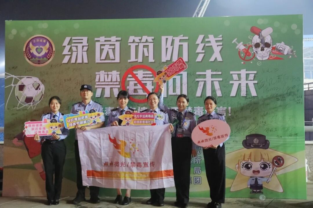 賽前球迷互動(dòng)區(qū)里,江蘇省女子強(qiáng)制隔離戒毒所“點(diǎn)點(diǎn)微光”禁毒宣傳團(tuán)隊(duì)積極行動(dòng),聯(lián)合鎮(zhèn)江市體育局、鎮(zhèn)江市文化廣電和旅游局、鎮(zhèn)江市文化廣電產(chǎn)業(yè)集團(tuán)等單位,為鎮(zhèn)江、無錫球迷送上禁毒知識和禁毒文創(chuàng)?!包c(diǎn)點(diǎn)微光”禁毒宣傳吉祥物“星星”也驚喜現(xiàn)身,與球迷代表在禁毒宣誓墻上寫下禁毒承諾,共同喊出“鎮(zhèn)江無錫,共筑防線”的青春無毒誓言。