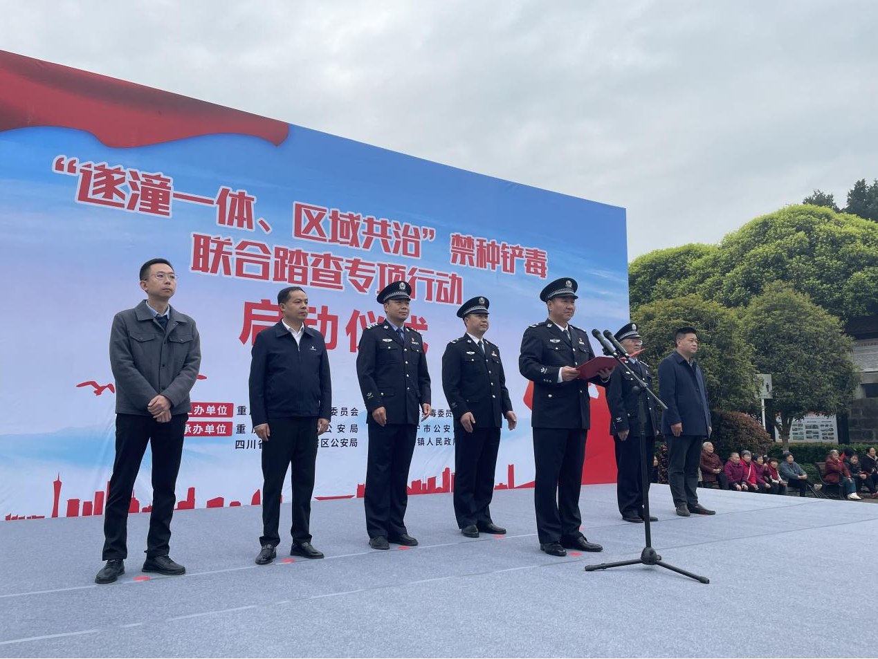為進一步鞏固川渝兩地禁毒工作成果,切實加強兩地禁毒工作的協(xié)作配合,堅決遏制非法種植毒品原植物問題反彈,力爭實現(xiàn)“遂潼一體化”非法種植毒品原植物基本禁絕的目標。3月20日上午,川渝“遂潼一體、區(qū)域共治”禁種鏟毒聯(lián)合踏查專項行動啟動儀式在重慶市潼南區(qū)雙江鎮(zhèn)楊闇公舊居廣場舉行,全面拉開兩地禁種鏟毒聯(lián)合踏查攻堅戰(zhàn)的序幕。潼南區(qū)禁毒辦、潼南區(qū)公安局相關(guān)警種,四川省遂寧市禁毒辦、遂寧市安居區(qū)公安局相關(guān)警種,出席啟動儀式。警用無人機專業(yè)操控人員,遂潼兩地毗鄰鎮(zhèn)(街道)代表、專職社工、禁毒志愿者代表200余人參加啟動儀式。