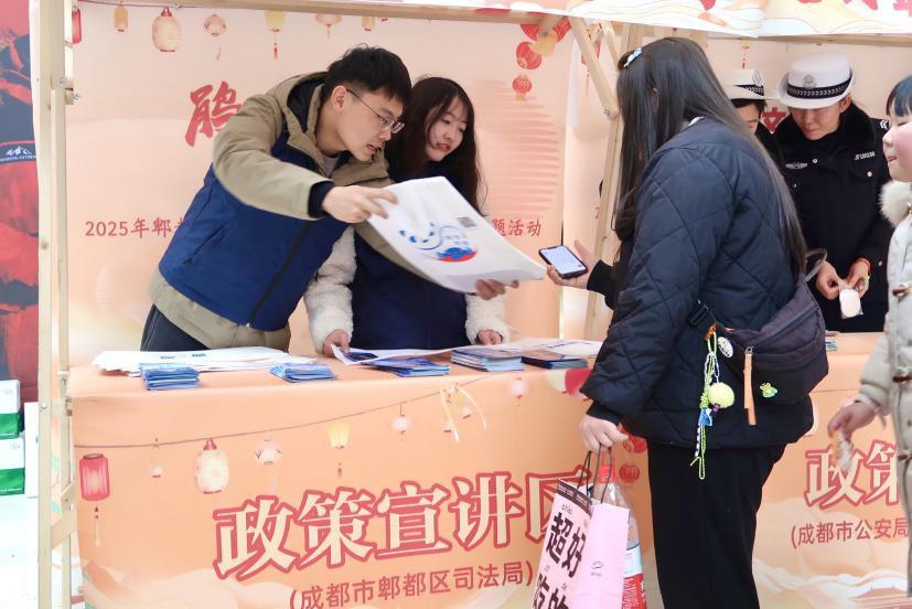 活動(dòng)現(xiàn)場(chǎng),非遺川劇變臉、猜燈謎、非遺蜀繡、非遺捏面人、非遺糖畫等節(jié)目吸引眾多居民駐足觀看。普法員為觀看節(jié)目的群眾送上交通安全、防范電信網(wǎng)絡(luò)詐騙、聘請(qǐng)律師指南等普法讀本,結(jié)合典型案例耐心解答群眾的疑問,并介紹12348熱線、“成都司法通”小程序等免費(fèi)法律咨詢方式,引導(dǎo)群眾切實(shí)掌握獲取公共法律服務(wù)的方式,提升法治意識(shí)、增強(qiáng)自我保護(hù)能力。