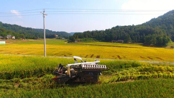農(nóng)機收割水稻(恩陽區(qū)委組織部供圖)