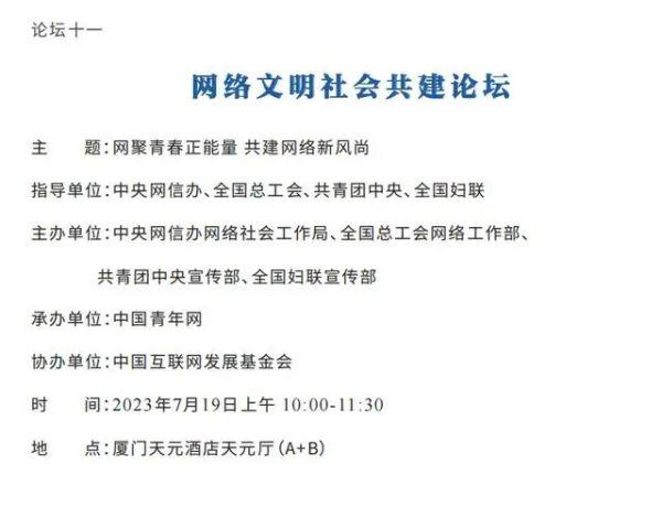 7月18日,2023年中國(guó)網(wǎng)絡(luò)文明大會(huì)即將盛大開幕。大會(huì)議程正式公布,12個(gè)分論壇也將精彩亮相。