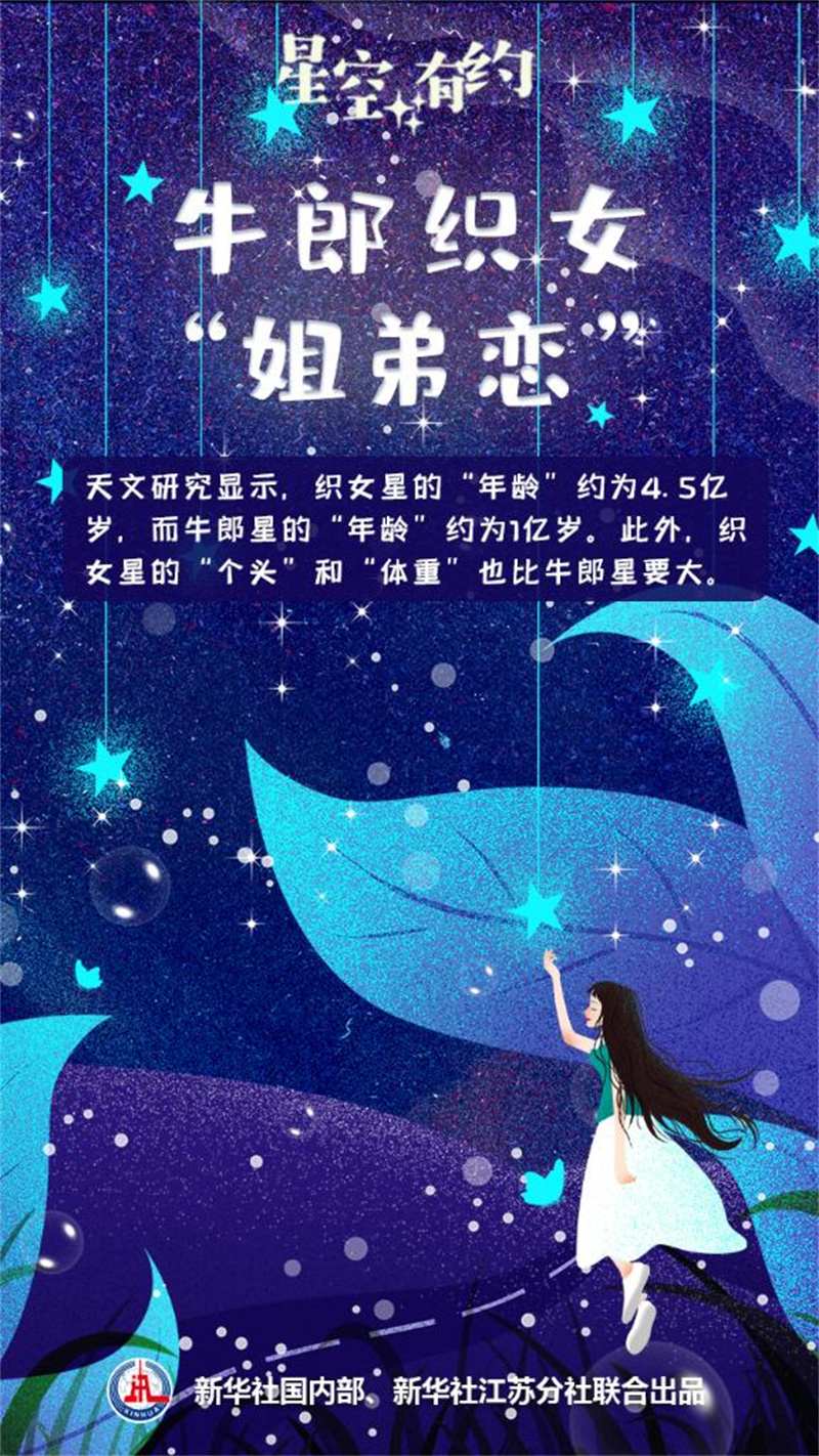 新華社南京8月20日電(記者王玨玢、邱冰清)8月22日將迎來七夕節(jié),這一天也是我國民間傳說中牛郎織女鵲橋相會(huì)的日子。牛郎織女的愛情,來源于我國古代人民對(duì)夏季夜空的觀察和想象?!芭@伞焙汀翱椗闭婺芟鄷?huì)嗎?他們?cè)凇吧砀摺薄巴饷病薄澳挲g”上是否相配?天文科普專家為您揭秘七夕節(jié)中的天文“冷知識(shí)”。