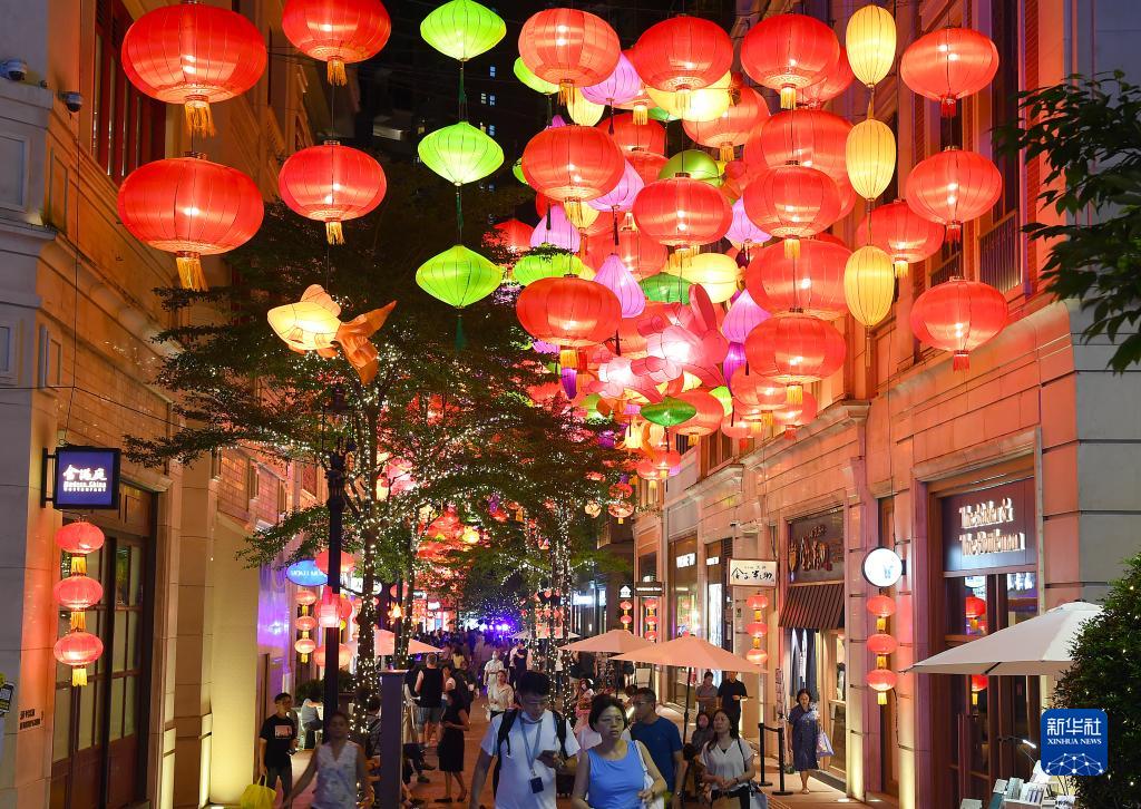 為迎接中秋佳節(jié)的到來,香港利東街舉辦“躍兔·迎月”戶外彩燈會(huì)。約200米長(zhǎng)的林蔭大道懸掛起800多個(gè)五彩繽紛的中式燈籠,營(yíng)造出喜慶的佳節(jié)氣氛。