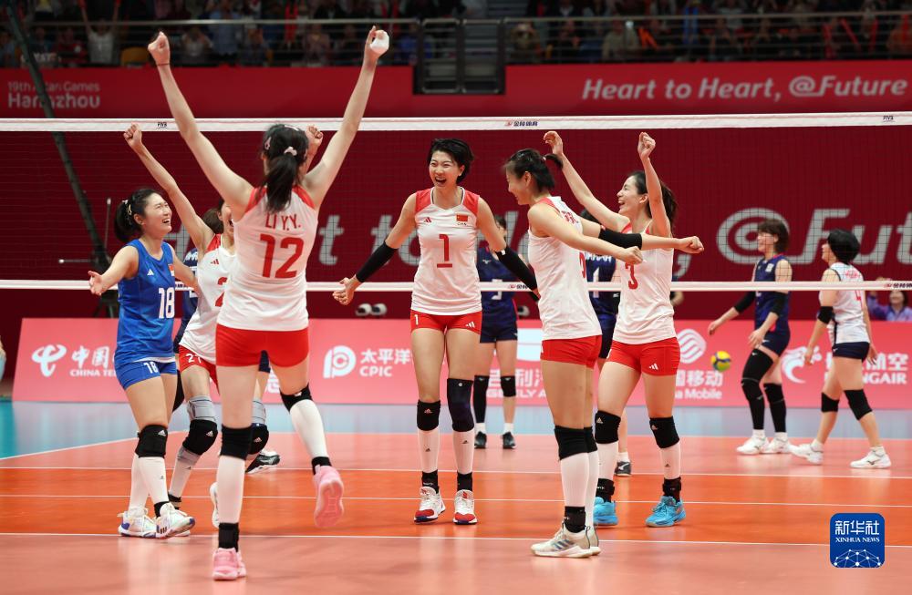 新華社杭州10月7日電(記者盧星吉、王鏡宇、殷曉圣)中國女排7日在杭州亞運會女排決賽中以3:0擊敗日本隊,以六戰(zhàn)全勝衛(wèi)冕亞運會冠軍。這也是中國女排歷史上第九次摘得亞運金牌。