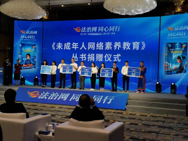 青少年是祖國(guó)的未來(lái),也是網(wǎng)上學(xué)習(xí)、交流、生活最活躍的參與者、實(shí)踐者。為營(yíng)造風(fēng)清氣正的網(wǎng)絡(luò)空間,守護(hù)青少年健康上網(wǎng),10月11日上午,在2023年“全國(guó)網(wǎng)絡(luò)普法行·四川站”啟動(dòng)儀式上,多家愛(ài)心企業(yè)向四川省中小學(xué)捐贈(zèng)《未成年人網(wǎng)絡(luò)素養(yǎng)教育》叢書。