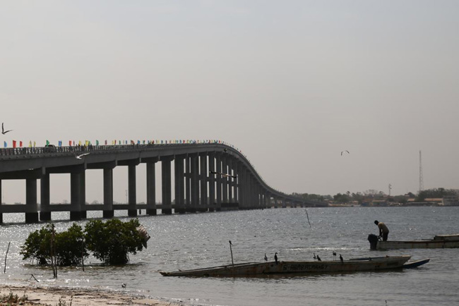 這是2022年1月16日拍攝的位于塞內(nèi)加爾法蒂克大區(qū)方久尼市的方久尼大橋。新華社記者王子正攝