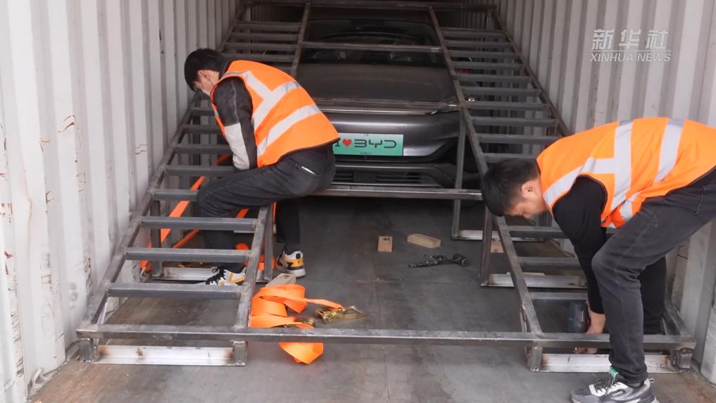 為了更好地適應(yīng)市場(chǎng)需求,鄭州鐵路為貨主量身定制了新能源汽車裝箱和加固方案。通過這樣的鐵架子,一個(gè)近12米長(zhǎng)的集裝箱得以最大化利用,能夠穩(wěn)穩(wěn)裝下3輛汽車。