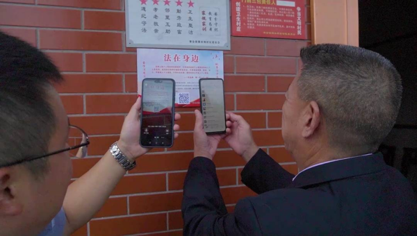 在潮水壩村,“戶戶有銘牌,一戶一銘牌”。銘牌上印有二維碼,新增個(gè)人信息保護(hù)等網(wǎng)絡(luò)普法知識(shí),內(nèi)容豐富。村里家家戶戶,按照生產(chǎn)生活需要,有針對(duì)性地,都貼上了不同類型的法治銘牌。