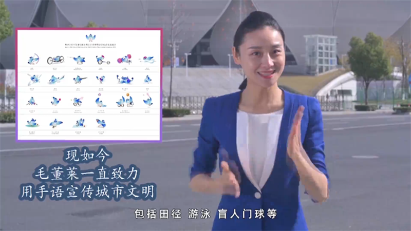 畫面中這位用手語(yǔ)和大家交流的女士,正是“手語(yǔ)姐姐”毛董萊。在本屆杭州亞殘運(yùn)會(huì)上,她將成為火炬手參與火炬接力,并將在整個(gè)亞殘運(yùn)會(huì)期間,用手語(yǔ)為大家提供幫助。今天,一起來(lái)聽聽“手語(yǔ)姐姐”毛董萊的故事。