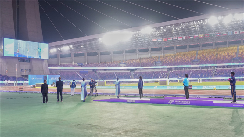 本次杭州亞殘運會的田徑賽場,6天時間里一共將產(chǎn)生153枚金牌(不包括并列情況),平均每天要頒獎20余次。以10月25日為例,當(dāng)天要舉行30次頒獎儀式,在如此頻繁的情況下,黃龍體育中心如何確保儀式過程萬無一失呢?
