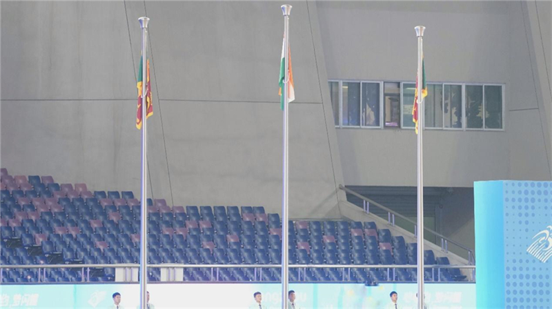 在黃龍體育中心,有一塊專門的旗幟準備區(qū)域,不到20平方米的房間里掛著數(shù)百面旗幟,賽事期間會有多名志愿者對旗幟進行熨燙,以保證這些旗幟在升起時挺拔有型。儀式結(jié)束后,旗幟將返回這個房間,井然有序。