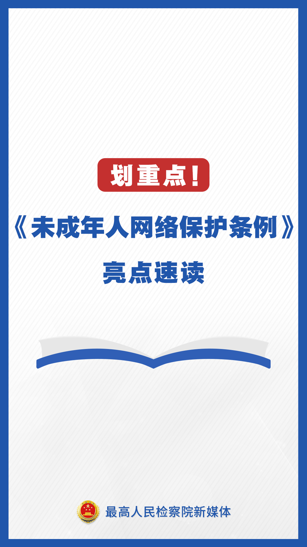 《未成年人網(wǎng)絡(luò)保護(hù)條例》來(lái)了!檢察君為你劃重點(diǎn),速讀未成年人網(wǎng)絡(luò)保護(hù)新舉措!不得通過(guò)網(wǎng)絡(luò)對(duì)未成年人實(shí)施侮辱、誹謗等網(wǎng)絡(luò)欺凌行為;不得為未成年人提供游戲賬號(hào)租售服務(wù);建立網(wǎng)絡(luò)直播發(fā)布者真實(shí)身份信息動(dòng)態(tài)核驗(yàn)機(jī)制……速速轉(zhuǎn)發(fā)擴(kuò)散!