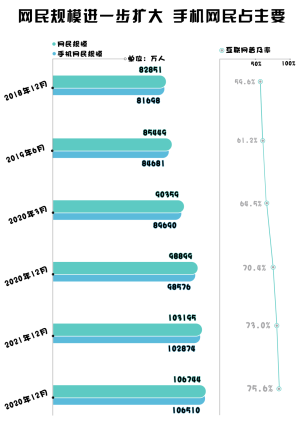 根據(jù)中國互聯(lián)網(wǎng)絡(luò)信息中心(CNNIC)發(fā)布的第51次《中國互聯(lián)網(wǎng)絡(luò)發(fā)展?fàn)顩r統(tǒng)計報告》(以下簡稱:《報告》)顯示,截至2022年12月,我國網(wǎng)民規(guī)模達(dá)到10.67億,互聯(lián)網(wǎng)普及率達(dá) 75.6%。互聯(lián)網(wǎng)絡(luò)發(fā)展呈現(xiàn)哪些特征呢?以下數(shù)據(jù)為您解讀。