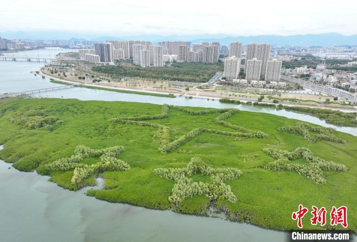 中新網(wǎng)廈門1月25日電(彭莉芳)退潮時(shí)分,在廈門市翔安區(qū)下潭尾紅樹(shù)林公園的灘涂上,一組由紅樹(shù)林勾勒的地標(biāo)景觀露出海面,郁郁蔥蔥,頗為壯觀。地標(biāo)景觀寓意“我愛(ài)中國(guó)”,紛至沓來(lái)的游客,在暮色中拍照“打卡”,偶爾驚起白鷺一片。
