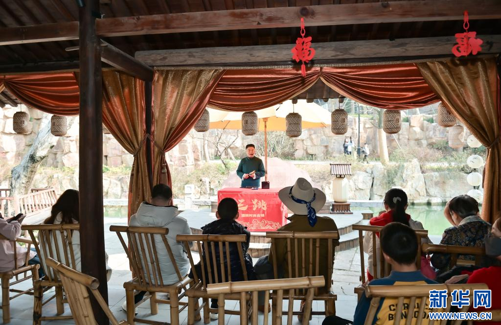 濮院瓦舍說書——桐鄉(xiāng)三跳。新華網(wǎng)發(fā) 濮院時(shí)尚古鎮(zhèn)供圖