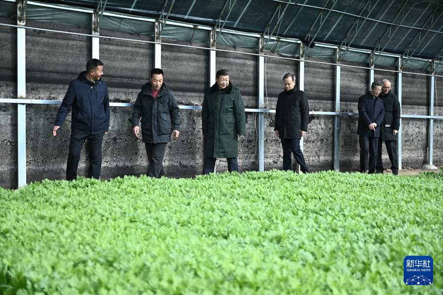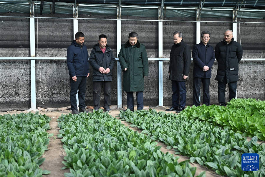 2月1日至2日,中共中央總書記、國家主席、中央軍委主席習(xí)近平來到天津,看望慰問基層干部群眾。這是1日上午,習(xí)近平在西青區(qū)辛口鎮(zhèn)第六埠村實(shí)地察看去年洪澇災(zāi)害后當(dāng)?shù)剞r(nóng)業(yè)生產(chǎn)恢復(fù)等情況時,走進(jìn)大棚看蔬菜長勢。新華社記者 燕雁 攝