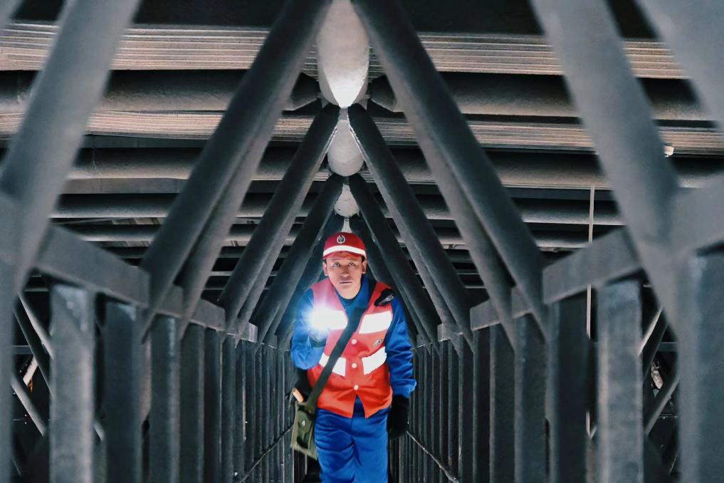 “因?yàn)檎九_(tái)巡檢需要彎腰和檢查一些狹小空間,穿上大衣很不方便,尤其在車站房頂作業(yè)還要攀爬一個(gè)梯子才能上去。我會(huì)在工作服里加一件羽絨背心,盡量讓自己暖和一些?!壁s在首趟列車到達(dá)茂縣站前,唐永春會(huì)對(duì)站臺(tái)帽石、站臺(tái)邊緣進(jìn)行細(xì)致地檢查,確保列車運(yùn)行安全。