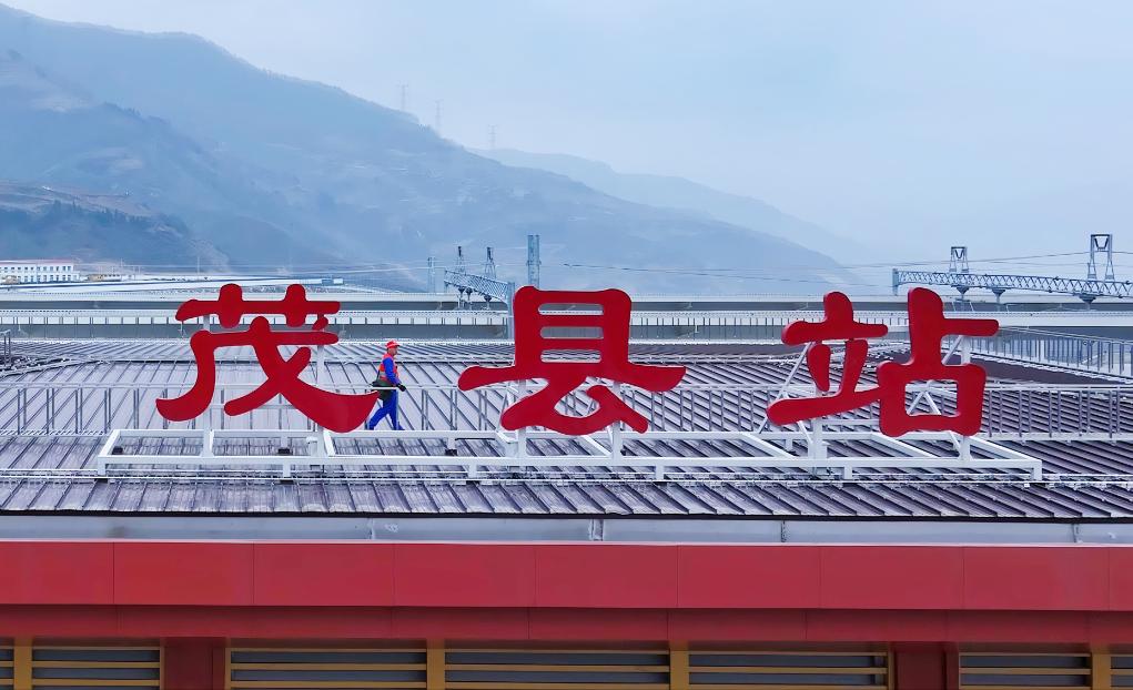 下午,溫暖的陽(yáng)光灑在茂縣站房頂,唐永春通常會(huì)選擇在這個(gè)時(shí)候進(jìn)行站房樓面檢查。樓頂凜冽的寒風(fēng)迎面刮過(guò)臉龐,唐永春的身影從大紅色的“茂縣站”三個(gè)大字旁穿過(guò),橙色的工裝背心成為站名牌邊的一抹亮色。