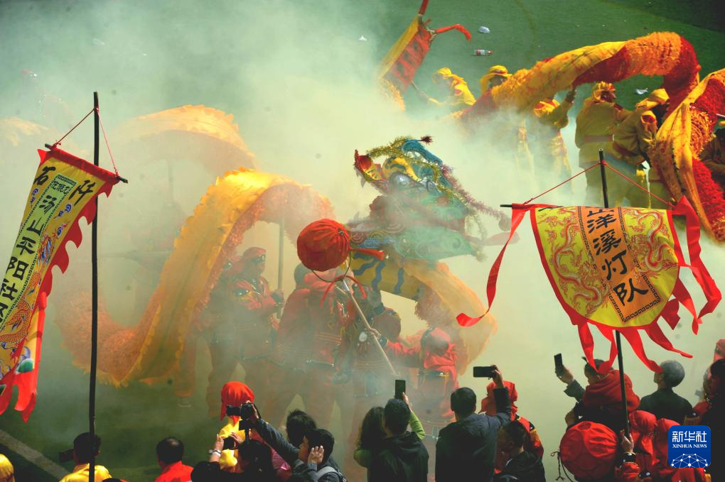 元宵佳節(jié)臨近,人們進行傳統(tǒng)舞龍表演,熱熱鬧鬧迎元宵。
