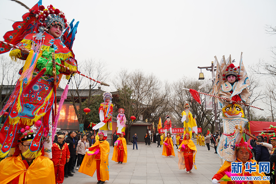 2月19日,在西安市臨潼區(qū)大唐華清城廣場(chǎng),西安市非物質(zhì)文化遺產(chǎn)項(xiàng)目“背芯子”表演。王三合攝
