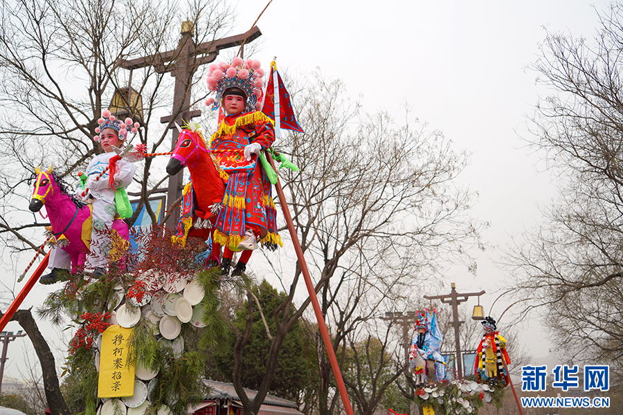 2月19日,在西安市臨潼區(qū)大唐華清城廣場(chǎng),西安市非物質(zhì)文化遺產(chǎn)項(xiàng)目“背芯子”表演。王三合攝