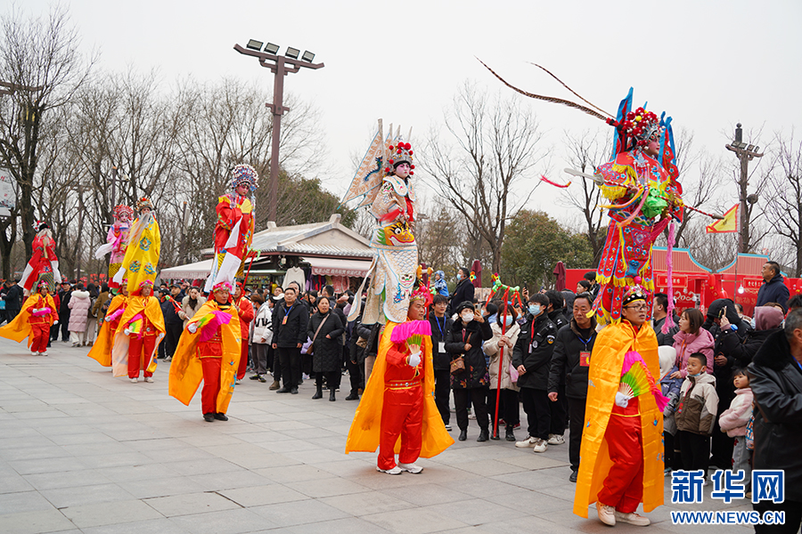 2月19日,在西安市臨潼區(qū)大唐華清城廣場(chǎng),西安市非物質(zhì)文化遺產(chǎn)項(xiàng)目“背芯子”表演。王三合攝