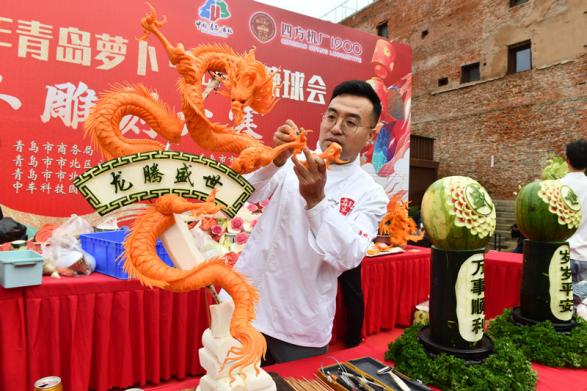 立春吃一寶,龍年無煩惱。中國北方素有正月初九“咬春”的習(xí)俗,“咬春”即吃蘿卜,寓意長長久久,平平安安。2月18日下午,蘿卜·元宵·糖球會保留節(jié)目—蘿卜雕刻大賽在易州路廣場如期舉辦。