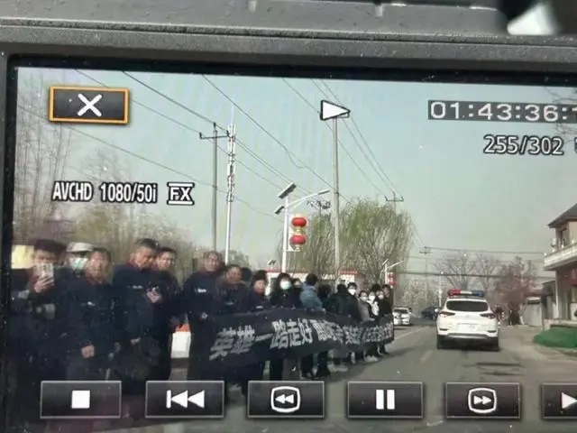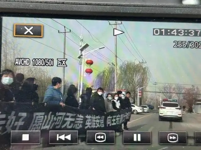 上午7時40分,護送烈士英靈的車隊緩緩從房山區(qū)殯儀館懷念堂前出發(fā)。長長的車隊在兩位烈士生活過的城區(qū)村落穿過,這里有他們眷戀的家鄉(xiāng)人民和熱土。