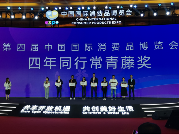 截至今年,中國(guó)國(guó)際消費(fèi)品博覽會(huì)(以下簡(jiǎn)稱“消博會(huì)”)已成功舉辦四屆,給眾多國(guó)內(nèi)外展商留下深刻印象,越來(lái)越多的新朋友成為消博老友,持續(xù)多年參展,共享開放機(jī)遇。4月18日,第四屆消博會(huì)為中國(guó)銀行、博柏利Burberry、復(fù)星集團(tuán)、愛丁頓洋酒、愛爾蘭國(guó)家館、傲勝、愛樂活跨境免稅健康商城等42家連續(xù)參展的贊助商、參展商代表頒發(fā)“四年同行常青藤獎(jiǎng)”。