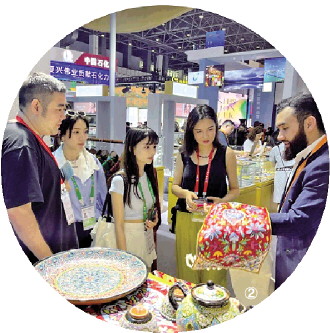 圖為烏茲別克斯坦參展商阿森貝克向中國客商介紹烏茲別克斯坦產(chǎn)品。新華社記者 程瀟 攝