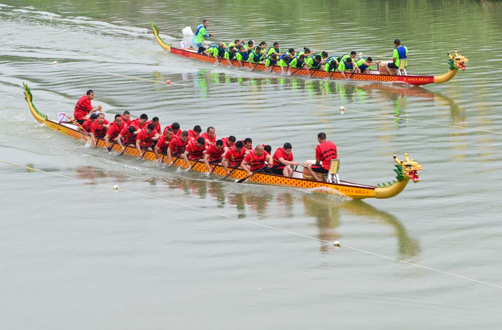 5月29日,在酉陽(yáng)縣龍?zhí)舵?zhèn),龍舟隊(duì)在水面角逐。
