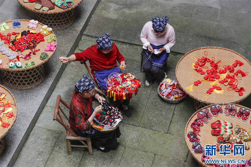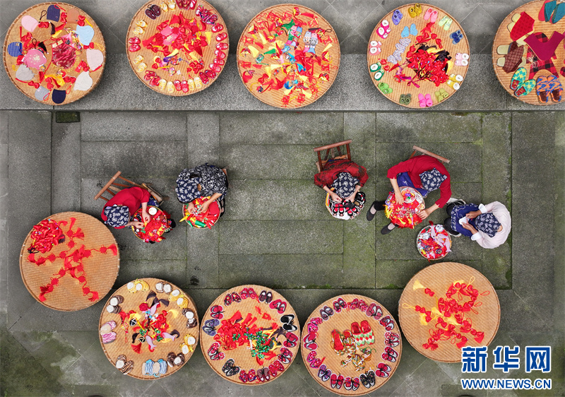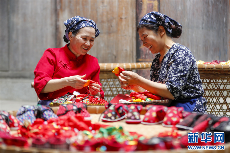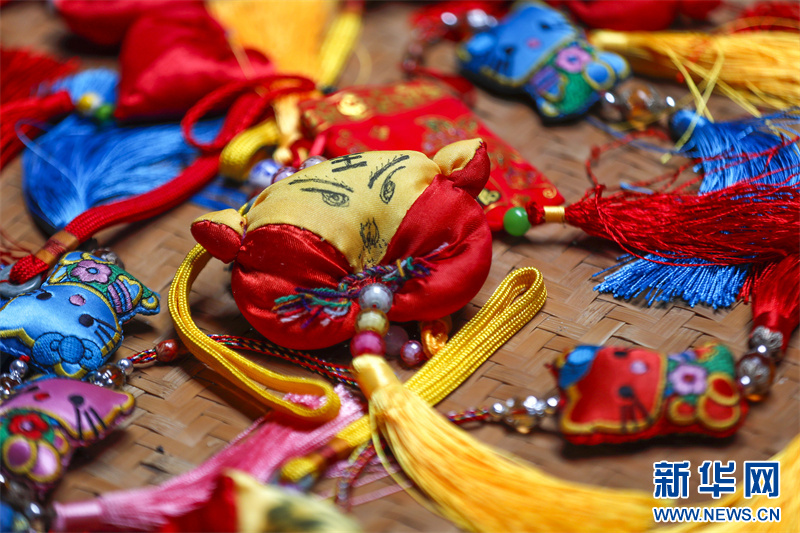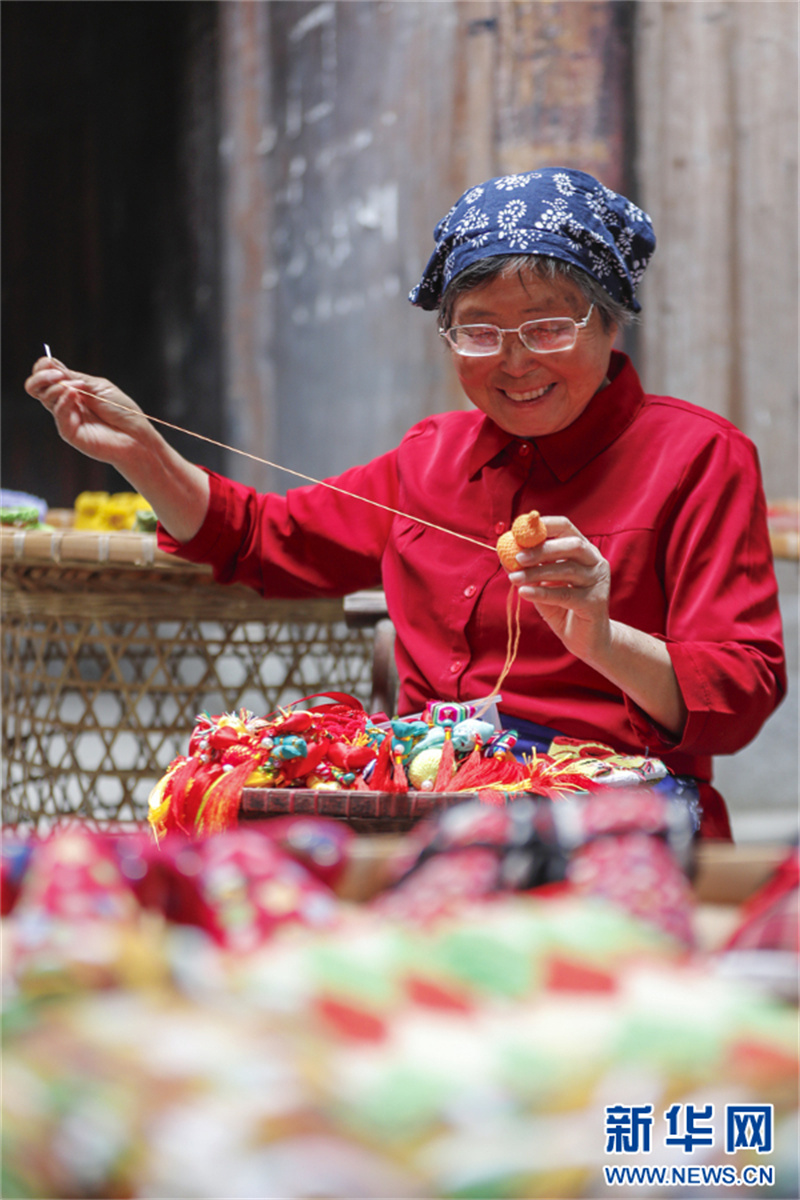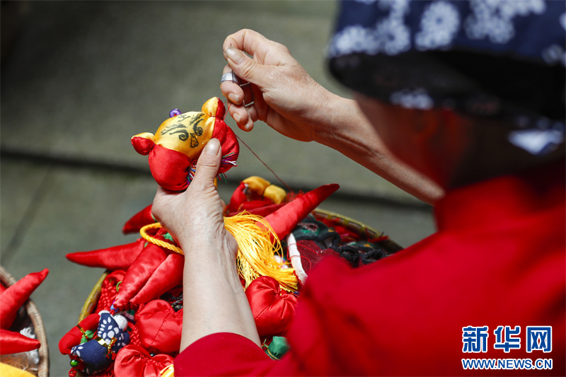 臨近端午佳節(jié),在安徽省黃山市歙縣許村鎮(zhèn)許村村,村民用五彩絲線、棉綢布、草藥香料等材料,巧妙地縫制出造型各異、繽紛多彩的非遺“徽州端午錦”,蘊含平安健康的美好祝愿,深受人們喜愛。 新華網(wǎng)發(fā)(施亞磊 攝)