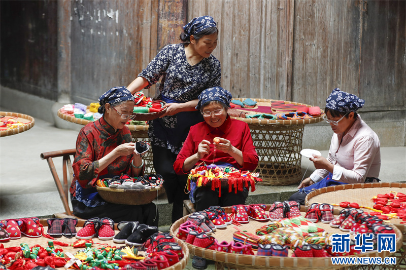 6月4日,在安徽省黃山市歙縣許村鎮(zhèn)許村村,村民手工縫制非遺“徽州端午錦”。