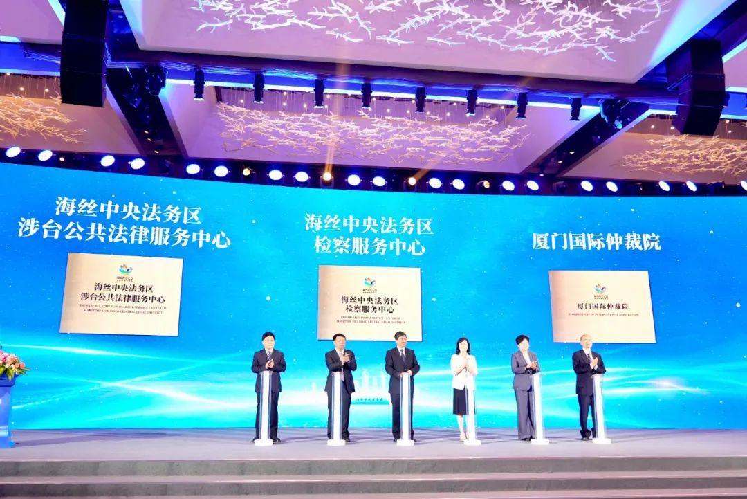 開幕式上,“海絲中央法務(wù)區(qū)檢察服務(wù)中心”“海絲中央法務(wù)區(qū)涉臺公共法律服務(wù)中心”“廈門國際仲裁院”揭牌;海絲中央法務(wù)區(qū)2024年度十大成果發(fā)布:海絲中央法務(wù)區(qū)成為法治化營商環(huán)境“新名片”、法商融合服務(wù)體系加速完善、辦理一批具有示范效應(yīng)的國際商事海事典型案件、搭建涉臺法律服務(wù)新矩陣、警安法務(wù)科技產(chǎn)業(yè)成為法務(wù)區(qū)發(fā)展新引擎、知識產(chǎn)權(quán)保護(hù)應(yīng)用體系拓維升級、域外法查明服務(wù)能力實(shí)現(xiàn)新突破、全國首個反壟斷審查合規(guī)輔導(dǎo)中心落地運(yùn)行、設(shè)立全國首個檢察影視孵化示范平臺、打造涉外法治人才培育基地;2024年“一帶一路”法律服務(wù)典型案例發(fā)布。