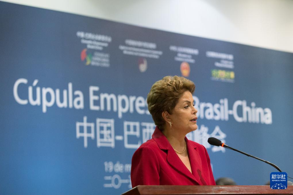 ??2015年5月19日,在巴西首都巴西利亞,時(shí)任巴西總統(tǒng)迪爾瑪·羅塞芙在中國(guó)—巴西工商峰會(huì)閉幕式上致辭。 新華社記者 徐子鑒 攝