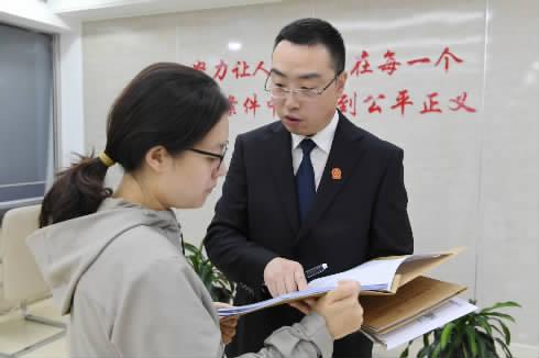 圖為10月17日,北京市第一中級(jí)人民法院執(zhí)行一庭法官孫鋒(右)在訴服大廳向執(zhí)行案件當(dāng)事人解答疑問。耿冬 攝
