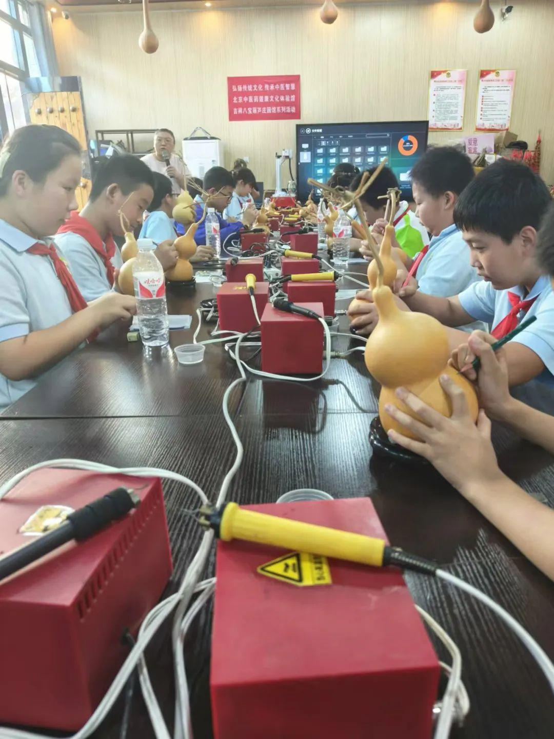 在龍灣屯葫蘆牛大師工作室,同學(xué)們跟隨非遺手工匠人一起體驗(yàn)市級(jí)非物質(zhì)文化遺產(chǎn)“火繪葫蘆”技藝,制作專屬的火繪葫蘆,深入感受中華葫蘆文化的傳承與發(fā)展。
