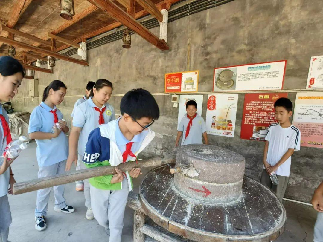 在南彩鎮(zhèn)河北村民俗園,同學(xué)們通過(guò)參觀鄉(xiāng)情村史陳列室、紅船、黨建長(zhǎng)廊,了解石磨結(jié)構(gòu)和工作原理并體驗(yàn)手工制作小農(nóng)具,沉浸式感受“傳承民俗文化、弘揚(yáng)民族精神”的理念。