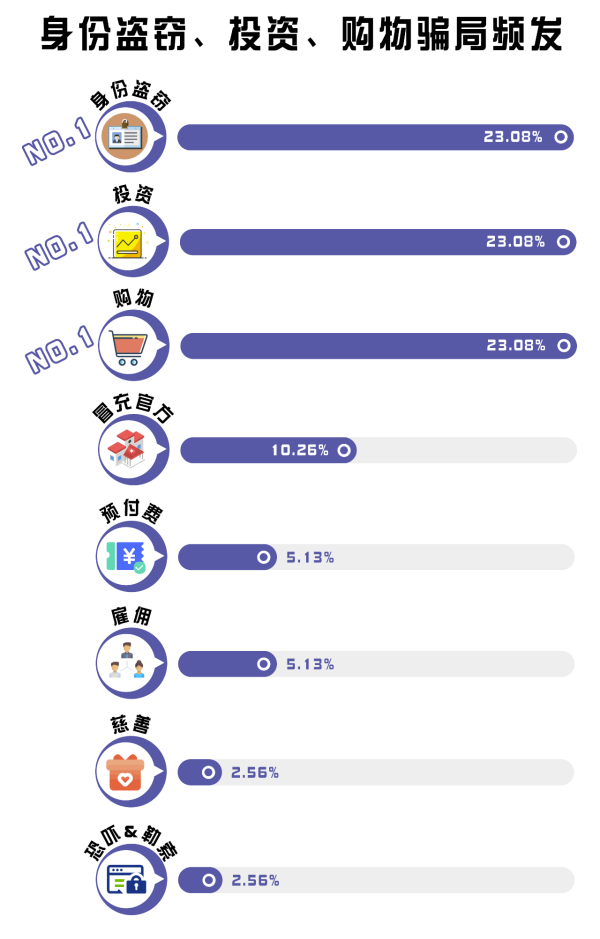 2、詐騙類型繁多,身份盜竊、投資詐騙、購物詐騙成“重災(zāi)區(qū)”