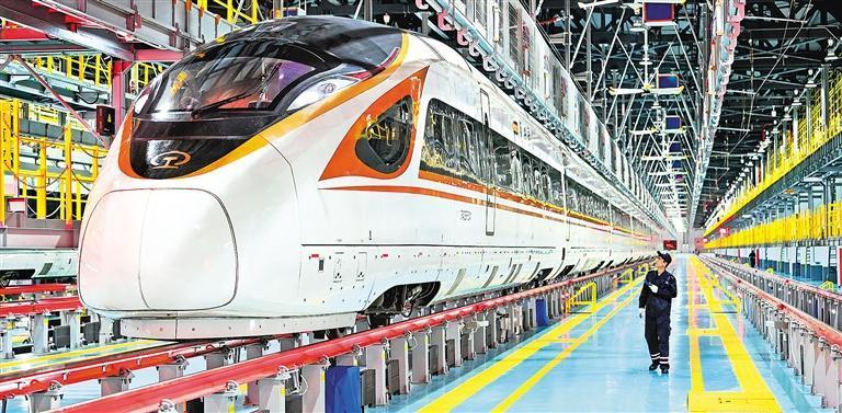 系統(tǒng)全面整體領(lǐng)先。2017年2月25日10時33分,G65次列車駛出北京西站,運行于京廣高鐵,標(biāo)志著中國自行設(shè)計研制的、擁有全面自主知識產(chǎn)權(quán)的中國標(biāo)準(zhǔn)動車組樣車正式上線運營。同年6月25日,中國標(biāo)準(zhǔn)動車組被正式命名為“復(fù)興號”?!皬?fù)興號”中國標(biāo)準(zhǔn)動車組的誕生和運營,標(biāo)志著中國高鐵邁出了“從追趕到領(lǐng)跑”的關(guān)鍵一步,我國鐵路技術(shù)裝備制造迎來了一個新時代。