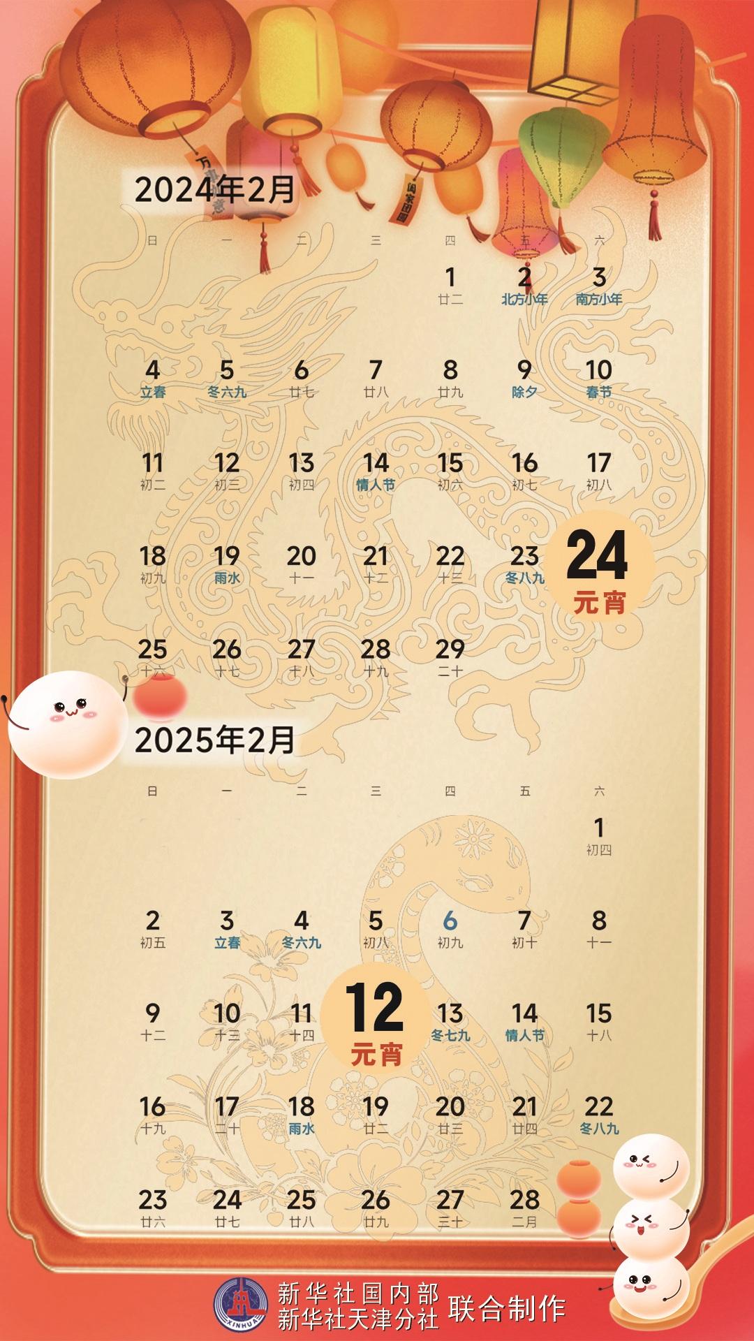 新華社天津2月12日電(記者周潤?。?月12日是蛇年元宵節(jié)。有心之人發(fā)現(xiàn),元宵節(jié)有點(diǎn)“調(diào)皮”,每年的公歷日期都不一樣。去年是在2月24日,今年則是2月12日,而明年又將是3月3日。這也意味著,今年元宵節(jié)比去年元宵節(jié)早了12天,而明年的元宵節(jié)又比今年元宵節(jié)晚了19天。這是何故?