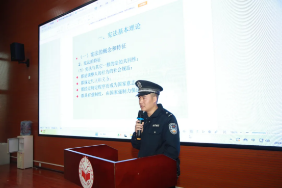 在觀山湖區(qū)第十一中學,云潭派出所社區(qū)民警陳向以“傳承憲法文化、弘揚法治精神”為主題,通過講解PPT、播放憲法宣傳公益廣告等方式,生動形象地為學生們講授了憲法的基本概念、國家憲法日的來源等方面的知識。